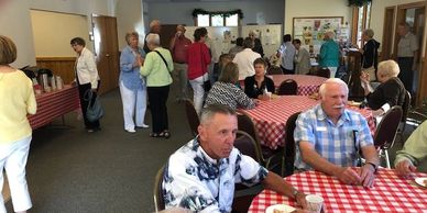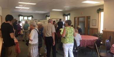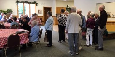 In addition to the fellowship activities preceding and following our Sunday Services at 10:00 a.m., the Men's Group and the Women's Group meet for breakfast at Holiday Cafe on Wednesday mornings at 8:00 a.m. There is also an after worship coffee hour, Discussion topics are wide ranging, often educational, and always interesting. In addition, other opportunities are provided year-round such as Easter and Christmas meals, Autumn's hot dog roast, and pot luck gatherings, often with a game session after the meal.